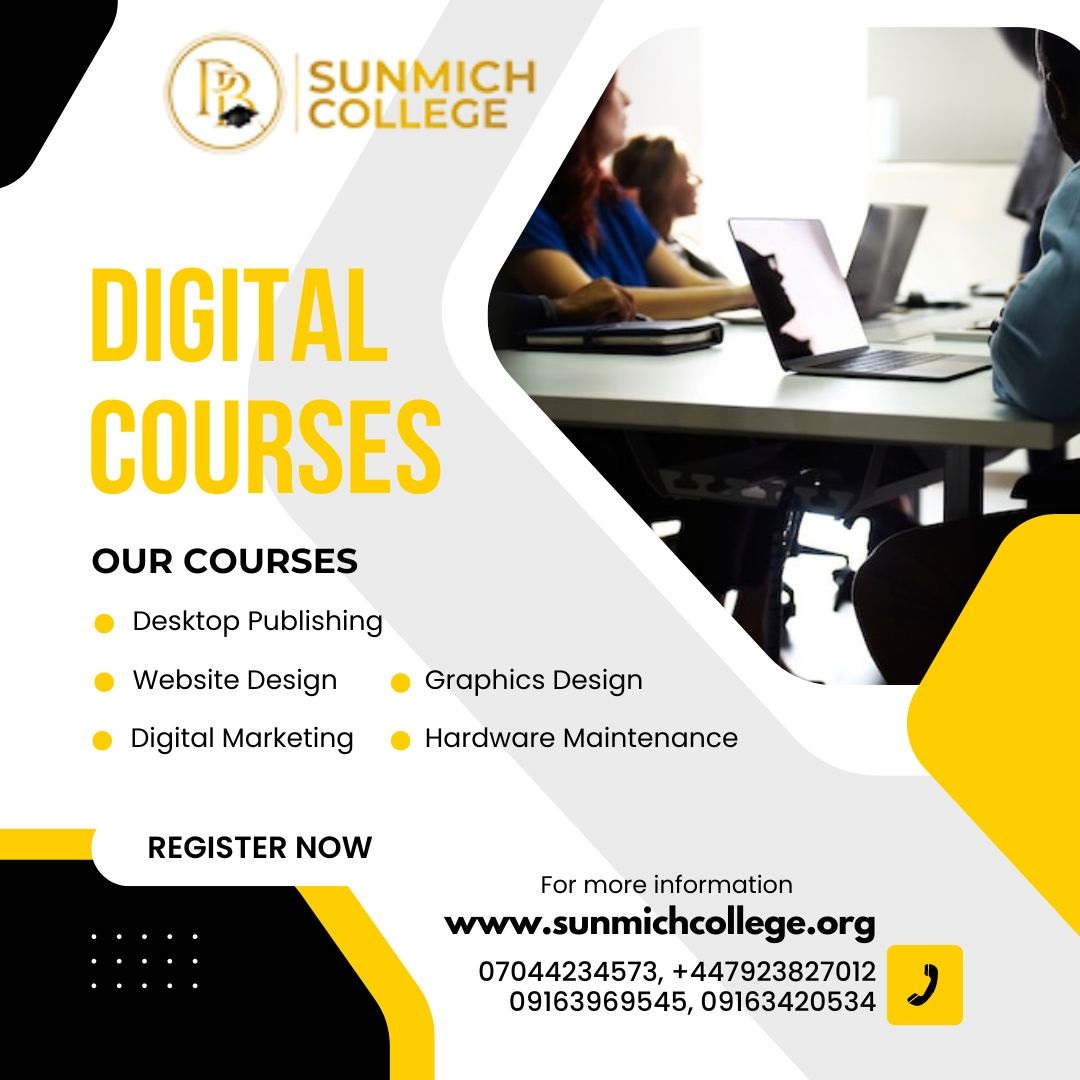 Register for the following courses: Desktop Publishing, Website Design, Digital Marketing, Graphics Design and Hardware Maintenance